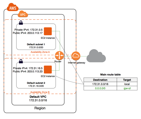 - 所有在默认VPC内启动的EC2实例都可以直接访问互联网
