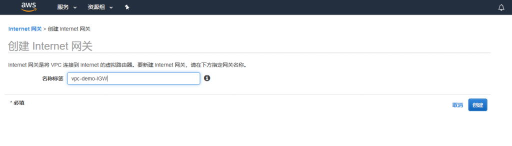 - 创建一个Internet Gateway并且绑定到VPC上,让EC2实例可以访问互联网