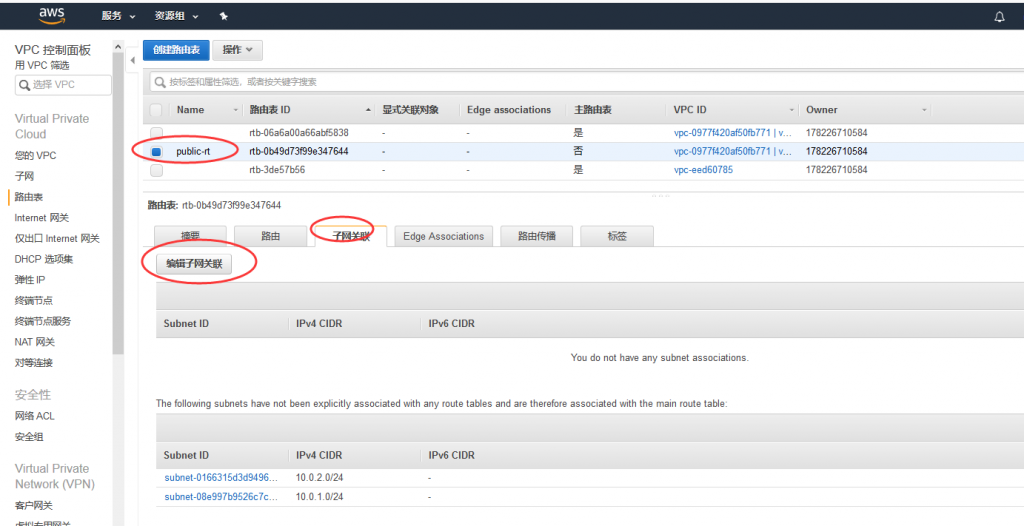 - 10.0.0.1是AWS预留的地址,用于VPC路由器