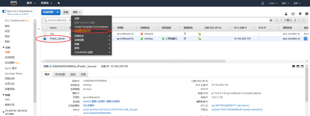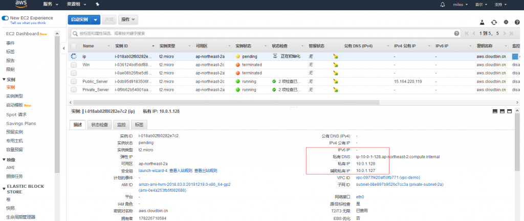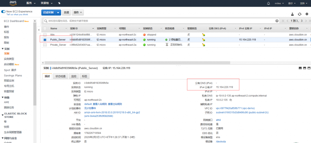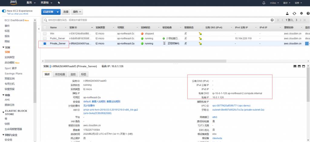 - 在默认VPC内启动的EC2实例都会被分配公网地址和私有地址