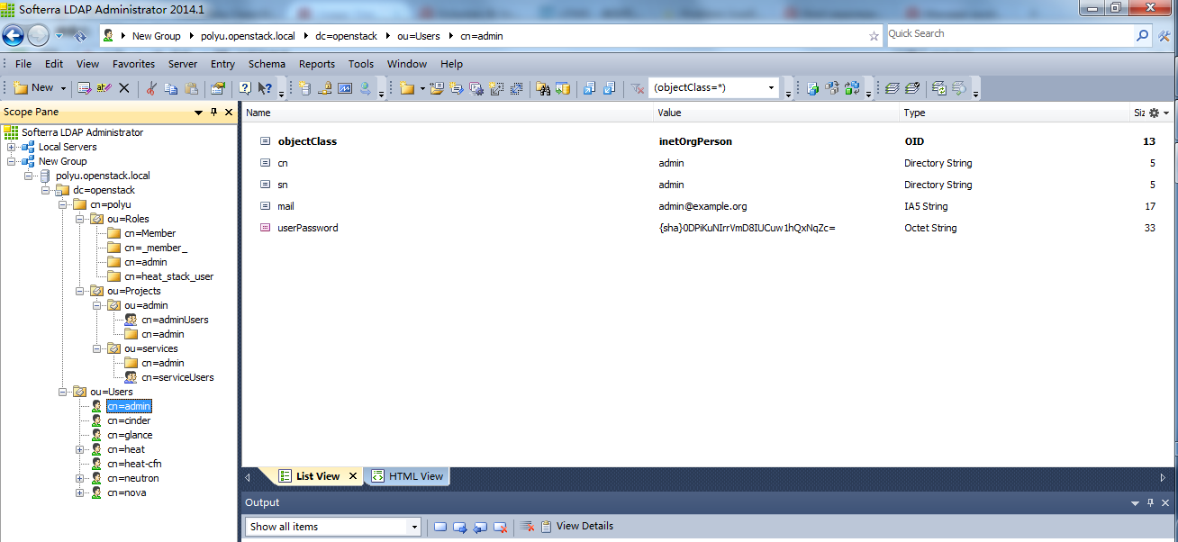 #ldapadd -x -W -D “cn=cloudsource,dc=OpenStack,dc=local” -f ldap.ldif